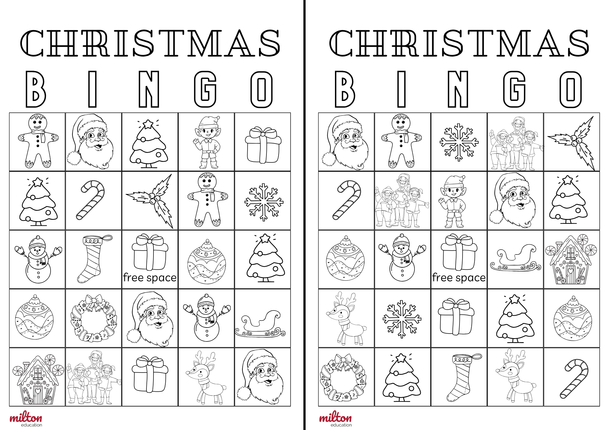 Christmas bingo boards which can be used alongside the flashcards below. Teachers can also get students to create their own bingo board to play with, based on the flashcard words. Suitable for pre-primary and primary.
