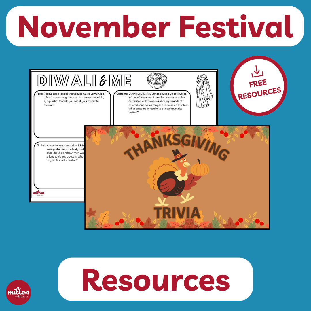 Download our November Festivals Pack and you can have fun celebrating Diwali and Thanksgiving with your students!
